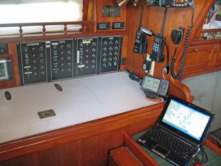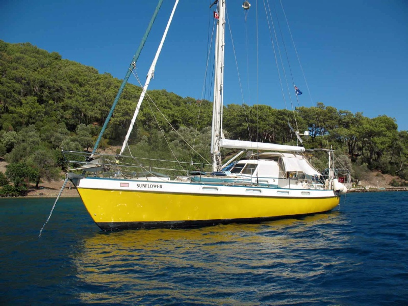 We are only the 4th owners and have had the pleasure of calling Sunflower our permanent home since 2003. We have sailed many thousands of miles in her, always safely and snugly regardless of weather or sea conditions. Like her previous owners we have kept her in tip-top condition and regularly upgraded her electronics to the current state of the art specification. We regard good food as a necessity whether at sea or on shore, so Sunflower’s galley has been upgraded with Corian tops and sinks as well as a top of the range stove. Along with a microwave and bread maker there is a large freezer and fridge which provides storage for 3 months worth of meats and meals for 2 people.