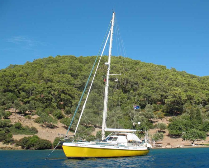 The Young 43s were designed and built in Auckland, NZ. They were designed as “Luxury Cruising Boats”, by Jim Young, although they were never mass produced, each one was customised to the owners specs, whilst retaining their excellent design features. Young 43s have circumnavigated many times, and we have met several in our travels. They are serious blue water cruising boats.